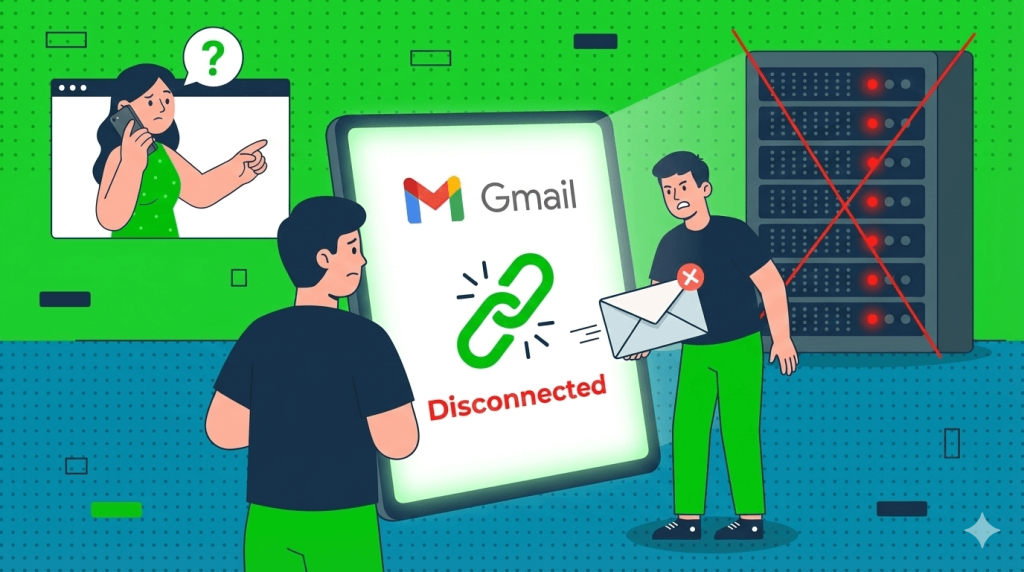 ۲. قطع شدن اتصال جیمیل (اگر از Gmail برای دریافت استفاده می‌کنید)